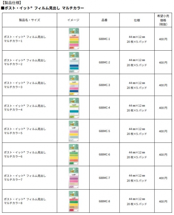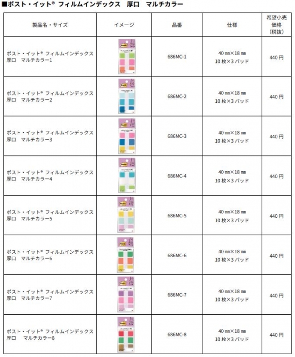 スリーエム ジャパン株式会社(本社:東京都品川区 代表取締役:宮崎裕子)が展開するポスト・イット® ブランドより2021年6月1日、「ポスト・イット® フィルム見出し マルチカラー」、「ポスト・イット® フィルムインデックス 厚口 マルチカラー/メタリックカラー」を発売します。