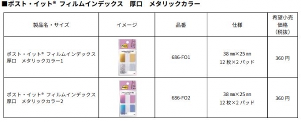 ホーム > 新製品情報・特集 > 3M、フィルムタイプ「ポスト・イット(R)」ゴールドやメタリックなど新色が登場!
