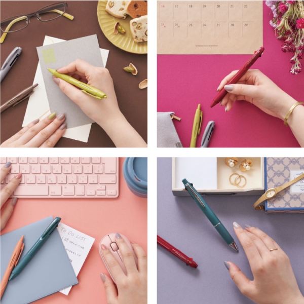 このたび新発売する『ジェットストリーム ハピネスカラー』は、お気に入りカラーを身に着けることで気分が高まる、という感覚を身近な筆記具でも体験していただける商品となっています。