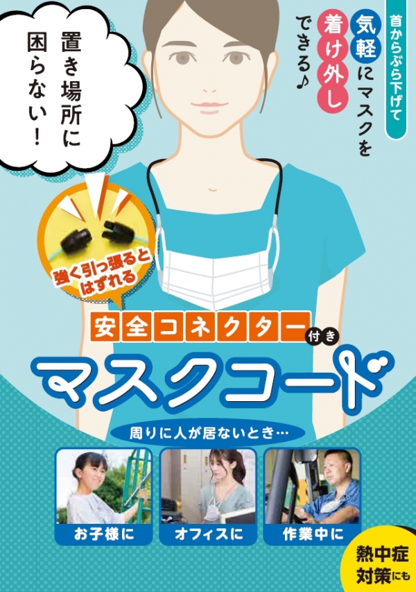 株式会社ミワックスは、首からぶら下げて、気軽にマスクを付け外しできる「マスクコード」を発売。