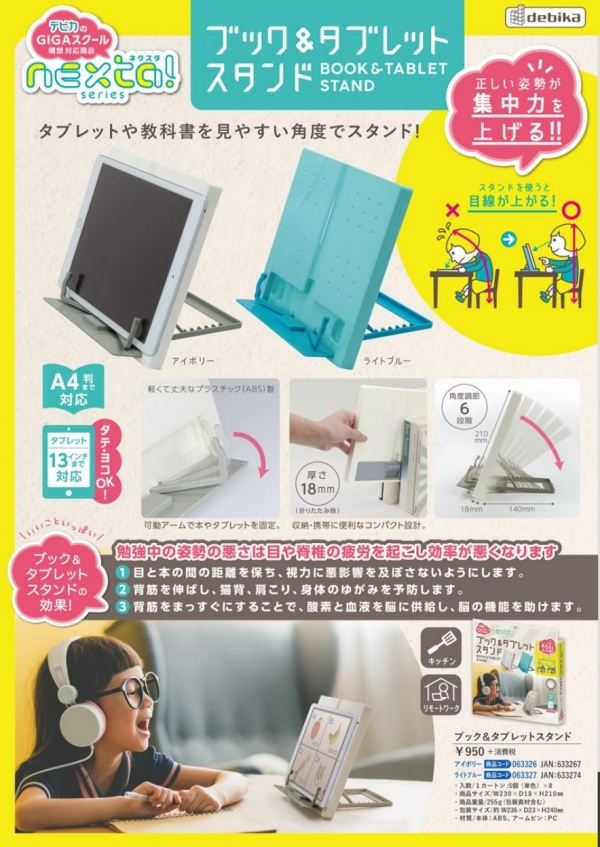 ホーム > 新製品情報・特集 > デビカ、ギガスクール構想対応新ブランドから「ブック&タブレットスタンド」発売