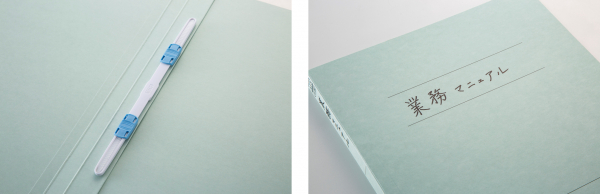 とじ具・とじ足には抗菌剤(銀イオン)を配合。汚れが気になる場合には、アルコールでふき取りも可能です。とじ具カラーは、抗菌のイメージに合わせたブルー・ホワイトを採用しました。