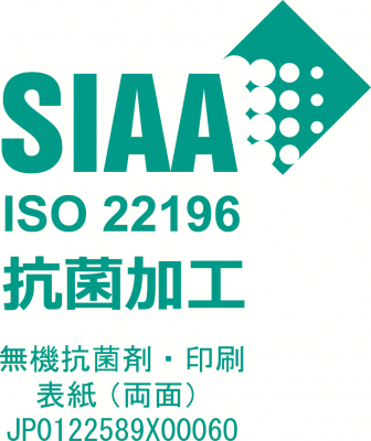 表紙は内面・外面ともに抗菌ニスを塗布。本体印刷後にニス塗工しているため、罫線部分も含めて抗菌仕様です。抗菌仕様であることがわかるよう、本体に「抗菌」「SIAA」マークを印刷。手にした人に、見た目から安心感を与えます。