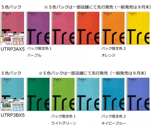 Tree’s ブランドの特徴である”自分らしく選べる”カラーバリエーションでありながら、学習の邪魔になりにくい落ち着いたニュアンスカラーを採用しています。また教科分けに便利な5色パックもご用意しているので、教科や用途などで使い分けするのに最適です。