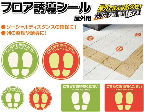 ● 待機列の整理や誘導、ソーシャルディスタンスの確保に役立つシールです。