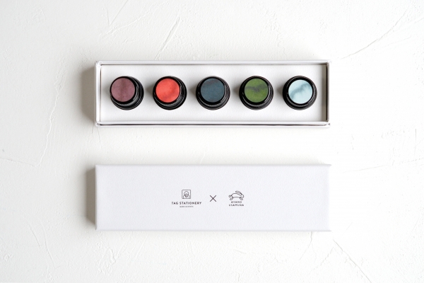 TAG STATIONERY 公式パートナーとしてご協力いただいているイラストレーターの兎村彩野さんとの共同企画第二弾です。兎村さんが調色したインク 5 色をセットいたしました。