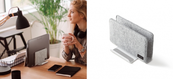 ソニックは、ノートPC・タブレット用スタンド『フェルトカバー付スタンド ユートリム タブレット・ノートPC用』を8月発売。1,430円(税込)