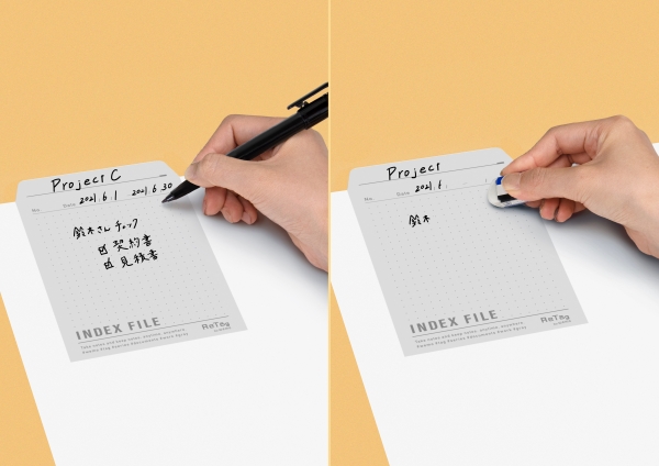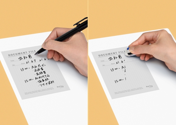 ホーム > 新製品情報・特集 > 油性マーカーで繰り返しメモして消せる、「脱・使い捨て」のサステナブルなドキュメント収納アイテム『ReTag by wemo』