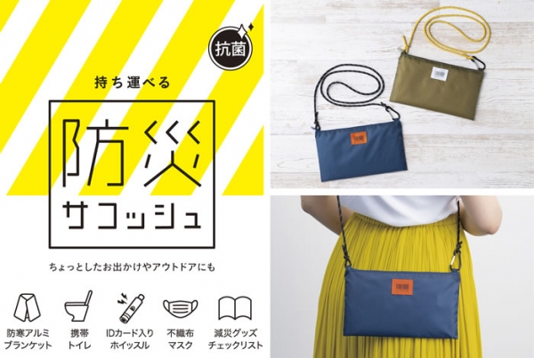 ● 手軽に持ち運べるサイズの斜め掛けバッグ「防災サコッシュ」です。