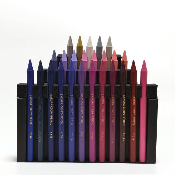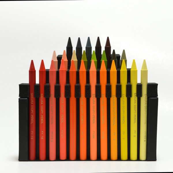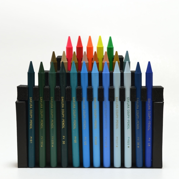 本商品は、サクラクレパス創業100周年記念商品の一つで、パッケージデザインに、シックでモノトーンのクーピー柄を採用しており、コレクション欲をくすぐるノスタルジー感あふれる逸品です。クーピーは4つのユニット、それぞれ25色ずつセットされて分かれており、描画の際はパッケージから取り出してお使いいただけます。そのほか、お家のインテリアとしてディスプレイいただくことも想定しています。