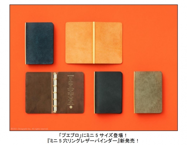 この度、当社が展開しているプロダクトブランド「PLOTTER(プロッター)」の人気シリーズ「プエブロ」に『ミニ 5 穴リングレザーバインダー』[ミニ 5 サイズ、ブラック/ネイビー/ブラウン/ベージュ/グリーン…計 5 色、11,000 円(税込)(※)]が新たにラインアップに加わります。同時に『リフィルメモパッド ToDo リスト 50 枚』[462 円(税込)]およびアクセサリーツールとして、『本革リングサポーター』[836 円(税込)]、『レザーカードケース』[1,980 円(税込)]を、2021 年 9 月 15 日(水)に新発売します。