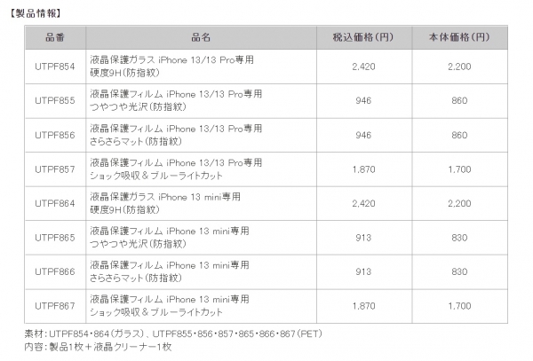 ヒサゴ、新機種「iPhone 13/13 Pro」「iPhone 13 mini」専用液晶保護ガラス&フィルム