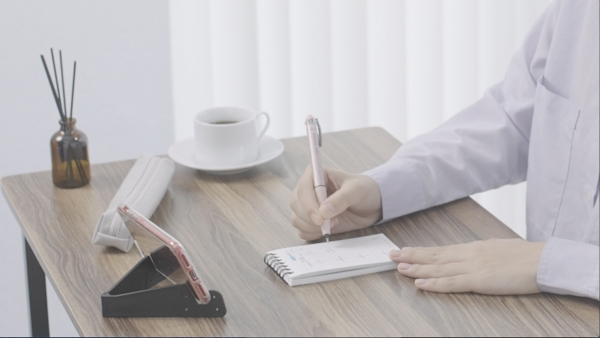 1.ビモアを購入後、練習帳に印刷されたQRコードからアクセスして、動画を見ながら練習帳に示された線や文字を書き取って学びます。練習動画はビモアを購入した人だけが見られるようになっています。