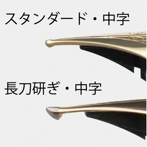 限られた職人だけが作ることができる究極のオリジナルペン先。ペン先の先端に通常より大きいペンポイントをつけ、長刀の刃型のように長く、角度を滑らかに研ぎ出しています。