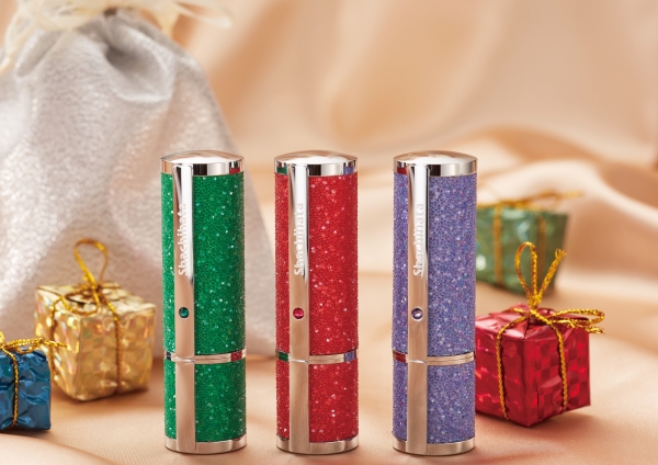 各月の誕生石をイメージしたクリスタルを散りばめた、高級感あるネーム印です。ボディーにはキラキラ光るダイヤモンドカットされたクリスタルとベースカラーを引き立たせる細やかな輝きが特徴の球体のクリスタルの2種類を採用し、特別感のある華やかな1本に仕上げました。