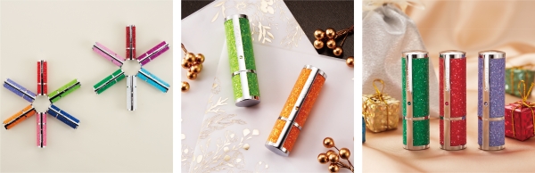 この度新たに発売する「ネーム9 Vivo 誕生月カラー」は、金属製のボディーに、1月~12月それぞれの誕生石をイメージしたクリスタルを散りばめた、12種類のエレガントなネーム印です。煌びやかな輝きが特徴のダイヤモンドカットされたクリスタルと、シンプルな輝きが特徴の球体のクリスタルの2種類をあしらいました。ビジネスシーンでも使いやすい洗練されたデザインで、使うたびに自分だけの特別感を感じられる1本です。