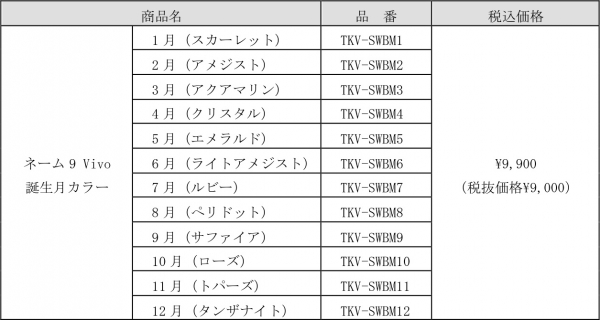 ●「ネーム9 Vivo 誕生月カラー」ラインナップ