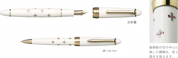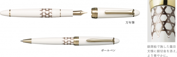 その世界観をしつらえた、ジュエリーとともに楽しめる新しい佇まいの蒔絵万年筆・ボールペンです。