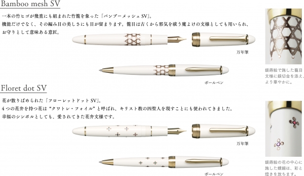 品名:Classic Ko 蒔絵文房万年筆 バンブーメッシュSV /フローレット ドット SV