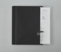 ゴムバンド付きなので、屋外での使用時にA3用紙が風に煽られにくく、また、A4サイズで持ち運ぶ際には、表紙止めとなります。作業中についた汚れが落としやすいよう、表面は細かいシボ加工で仕上げ、カラーは汚れが目立ちにくく、オフィスワークでも使いやすいブラック、カーキ、ベージュの3色を揃えました。