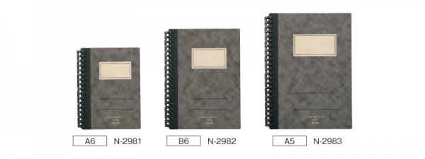 クラシカルテイストに仕上げた紙製表紙のオープンリングノートはタイトルを記入できる表紙デザインです。