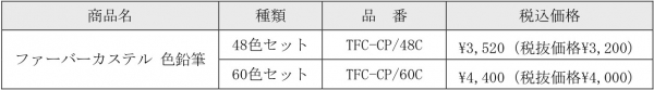 「ファーバーカステル」は、1761年に世界で初めて、鉛筆の製造・販売を開始した世界最古のドイツの筆記具メーカーです。「ファーバーカステル 色鉛筆」は、描き心地のなめらかな色鉛筆のセットです。直径3.3mmの太さの芯は、芯が折れにくい構造になっています。これまで12色、24色、36色の3種類のセットをご用意していましたが、今まで以上に豊かな表現で作品を楽しむことができる48色と60色のセットを新たに発売します。