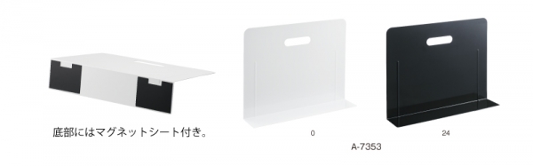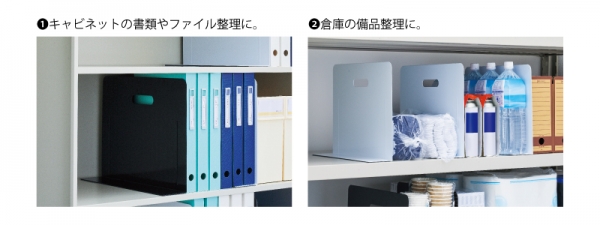 シンプルなL型なので、棚の端までスペースを有効に活用できます。底部にはマグネットシートが付いており、不用意に倒れることがないので、キャビネット内の整理はもちろん、倉庫の備品管理等にも使用することができます。