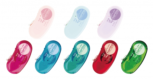 「ノリノビーンズ」は、片手操作できれいに糊付けできて、ペンポーチにすっきり納まるコンパクトな使い切りタイプのテープのり。2012年の発売以来、使い勝手のよさとかわいらしさで、学生を中心にご愛用いただいています。