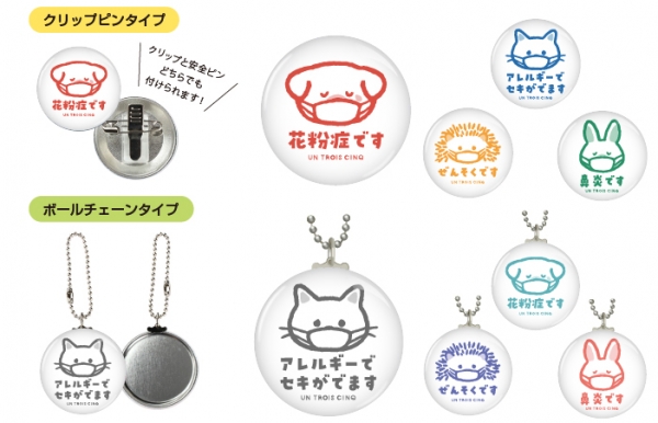 ● くしゃみや咳の原因を視覚的に伝えられる缶バッジです。