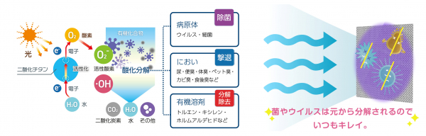 ■光触媒フィルターがウイルスや菌、悪臭成分を元から分解