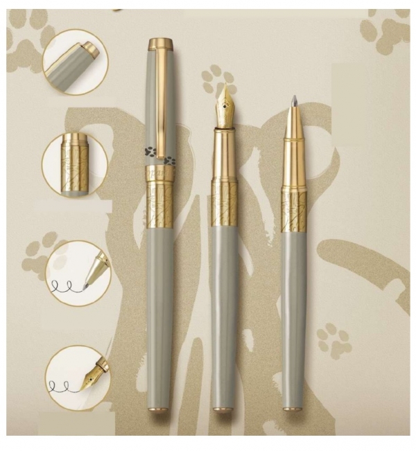 デザインは、台湾に生息し、絶滅危惧種に指定されている「ベンガルヤマネコ」がモチーフ。身近な筆記具である万年筆とローラーボールにデザインしました。