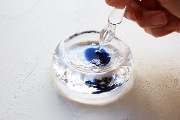 インクを溶かしてください。添加する水の分量でインクの濃淡を調整できます。