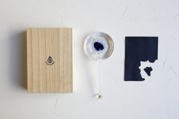 古くから友禅染や絞り染めの下絵に利用され、江戸時代には浮世絵を描く青色絵具として使われてきました。従来の用途とは別の新しい販路を広げるため、従来の製造方法と違い、「NPO 法人青花製彩」独自の製造技術を使い筆記用のインクに展開しました。