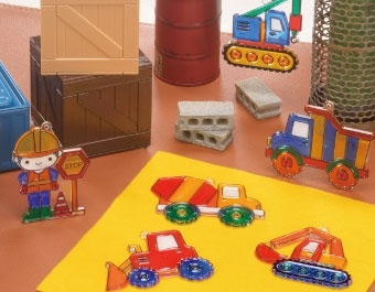 今回は、人気の工事現場モチーフの『はたらくクルマ』が登場しました。従来品同様、グラスデコ6カラー(本)と絵柄6コ(種)のプレートが入っており、手軽に作品が仕上がります。