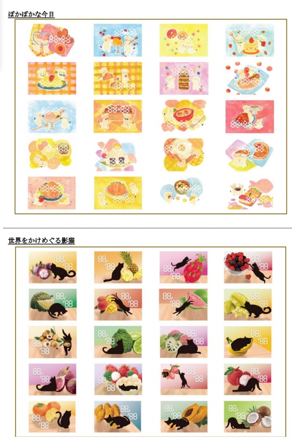 果物、楽器、風景の 3 テーマと影猫の絶妙な大人可愛さが詰まっています。
