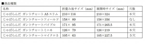 ホーム > 新製品情報・特集 > じゃばら型システム手帳リフィル ガントチャート型「じゃばらんだ Gantt」6月1日発売