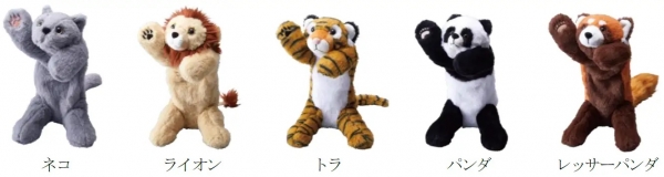 ラインアップはネコ、ライオン、トラ、パンダ、レッサーパンダの5種類で、肉球の色や形もそれぞれに合わせたこだわりのデザインです。