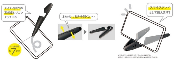 ホーム > 新製品情報・特集 > ナカバヤシ、開くとスマートフォンスタンドになる「スタンドタッチペン」を発売