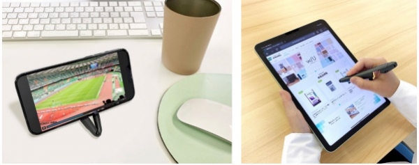 見やすい角度にスタンドできるため、動画視聴やオンラインミーティングなどスマートフォンをプライベート・ビジネス共に多用する方に最適です。