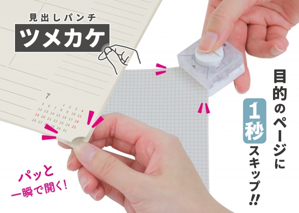 ホーム > 新製品情報・特集 > ノートや手帳のインデックス作成にも便利な 見出しが作れるパンチ『ツメカケ』を発売