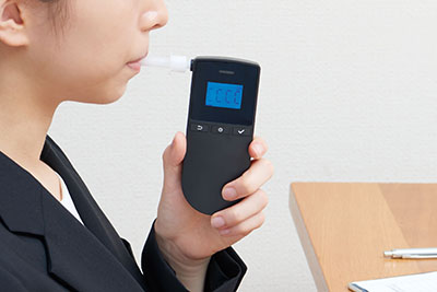 ・息を吹き込むだけで簡単にアルコールチェックできる