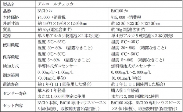 ※アルコールチェッカーBAC10、BAC100はアルコールの検知にガスセンサーを使用しております。本製品は特定のガスを検知するものであるため、センサーの特性上、アルコール以外のガスに反応することがございます。また、微量のアルコールを含む飲料や食品を摂取した直後は、飲酒の有無にかかわらず反応することがあります。