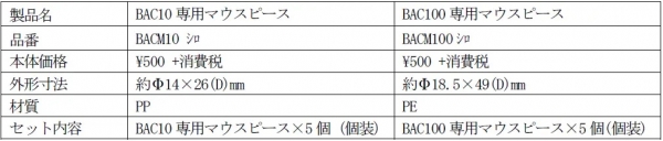 息を吹き込みやすい専用マウスピースが5個付属しており、都度交換し水洗いができるので衛生的です。専用マウスピースだけのオプション品もあります。(別売。5個入り)