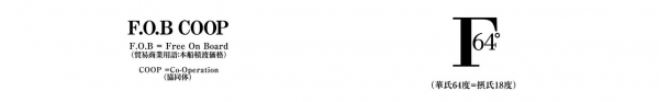 《F.O.B COOP》は【適正コスト、適正プライスを実現するワークグループ】をめざして名付けられました。【人が最も快適に過ごせる温度】を“F.O.B COOP”の頭文字で表現したロゴマークです