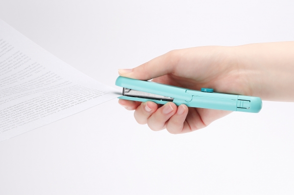 そこで本製品は、「ペンケースに入れやすい形状と軽量による持ち運びやすさ」をコンセプトに、ペールトーンカラーを採用することでペンケースのアクセントとしても使えるホッチキスとしました。