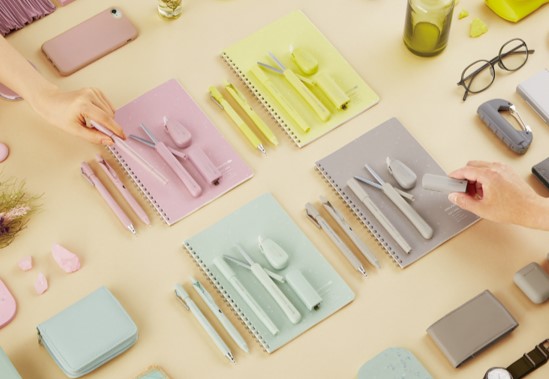 今回の第8弾では、ターゲットであるミレニアル・ゼニアル世代の働くシーンで使う文具に加え、学ぶシーンでも活躍するアイテムを含む4商品を発売します。ソフトカラーのマーカーと、グレイッシュな極細ペンが1本になった「2ウェイマーキングペン」と、キャンパスノートの罫線の太さと紙色に合わせた「修正テープ」はノートをキレイにまとめる際に役立つ学びツールとして、また、刃をスライド式で出し入れできる「携帯ハサミ」とコンパクトに折りたためる「ポータブルステープラー」は、持ち運びしやすいデザインを採用し、働くシーンでも学ぶシーンでも使えるツールとしてラインアップします。