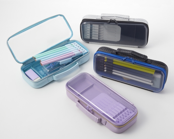 ふた部分が軽くて丈夫な透明PET素材で出来ており、中に入れたものが外から見えるので、お気に入りの文房具との”中身見せコーデ”を楽しめるほか、忘れ物チェックが簡単にできます。