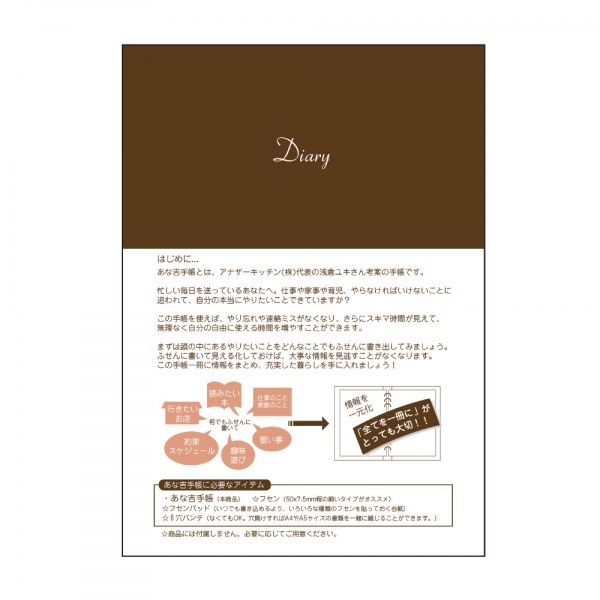 「週間ページ」には手帳術や、がんばる日々を過ごすための応援メッセージとして、あな吉コラムを収録。