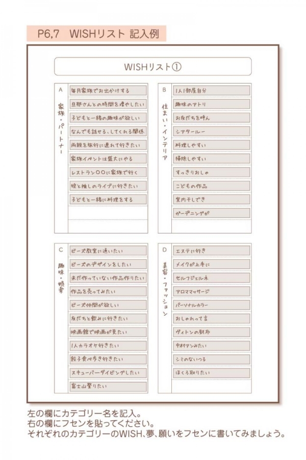 付録ページ WISHワークシート(ライフバランスチャート、ライフバランスシート、WISHリスト、年末の理想・ゴール、未来日記、WISH年間プラン、細分化シート、8ステップ)