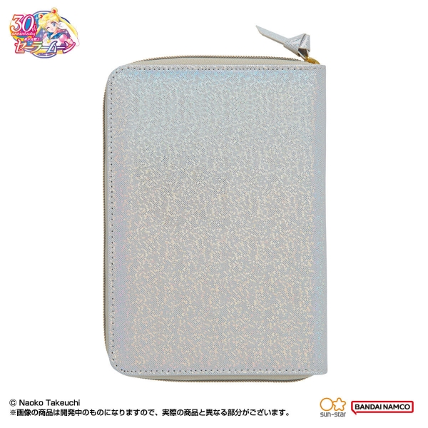 手帳カバーには、2種それぞれに異なる輝きを持つ魅力的な生地を採用しました。カバーの中央には作品タイトルと「スーパーセーラームーン」の決め台詞の箔押し、そして繊細なデザインのムーンカレイドスコープのチャームがきらりと輝きます。